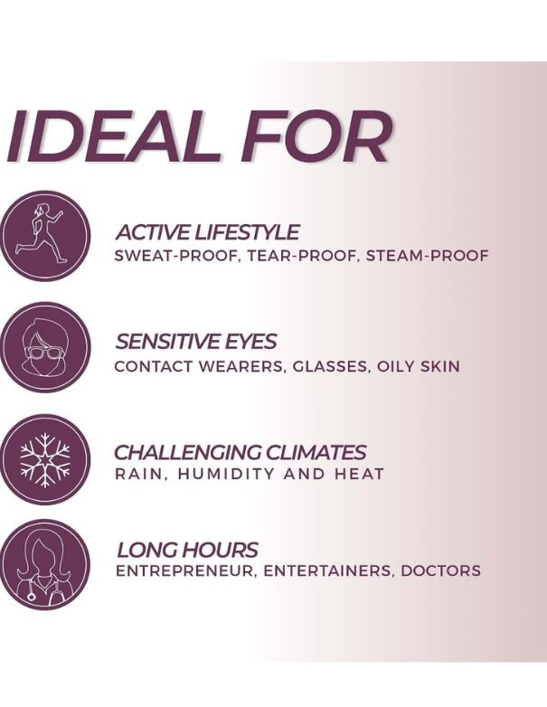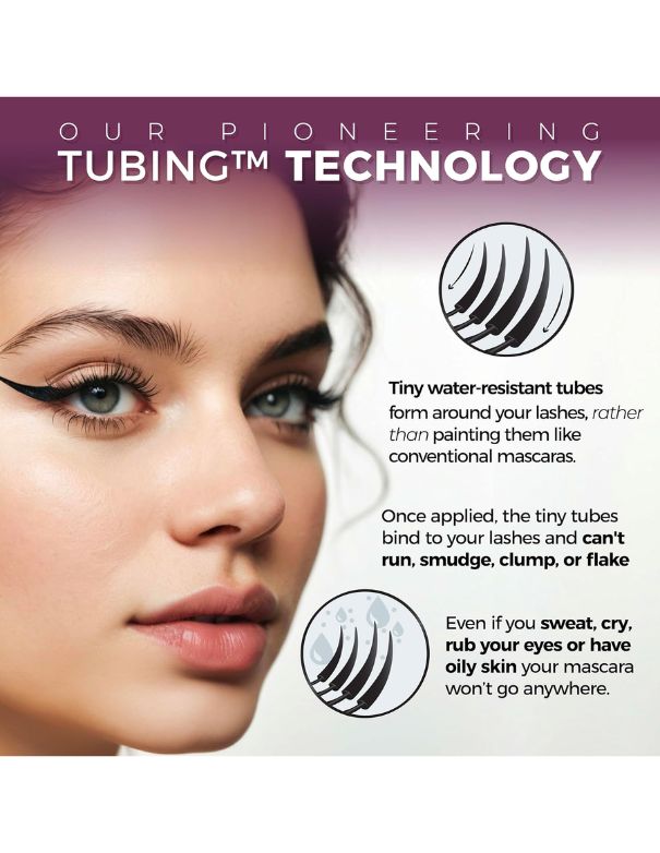 - L'eau seule (transpiration ou larmes), une légère pression seule (se frotter les yeux ou dormir avec son mascara) et les démaquillants ne peuvent pas enlever les minuscules tubes de mascara.