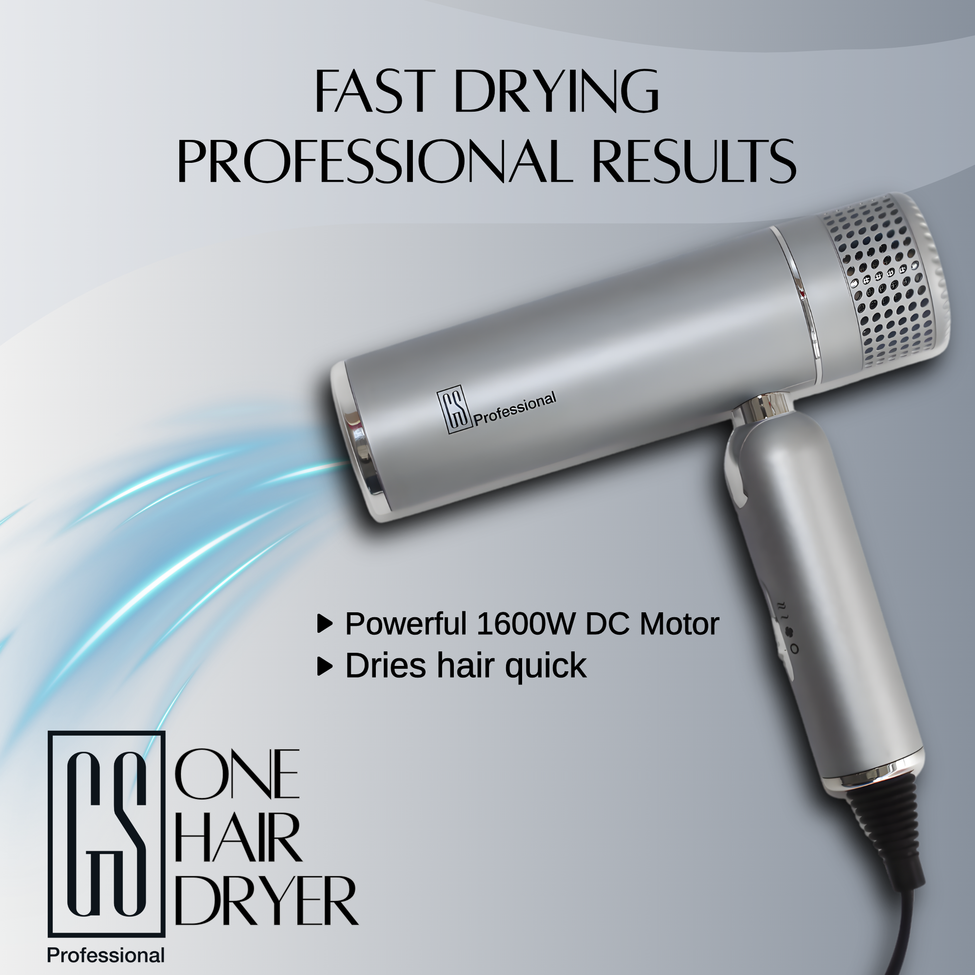 GS Professional OneDryer est un sèche-cheveux léger et puissant qui fournit un débit d'air maximal avec un minimum d'électricité.