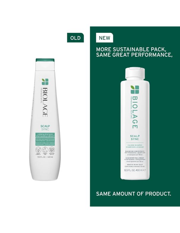 Le shampooing apaisant Biolage Scalp Sync est un shampooing doux pour les cuirs chevelus secs et sensibles, enrichi en thé fermenté et en acide glycolique. Il prend soin des cheveux en douceur, les rendant lisses et plus faciles à coiffer, tout en laissant le cuir chevelu visiblement plus sain.