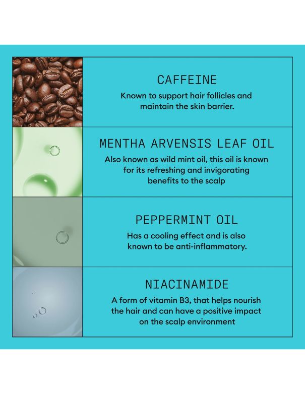 Ingrédients clés : Formulé avec des ingrédients puissants comme la niacinamide, l'huile de menthe sauvage, l'huile de menthe poivrée et la caféine.