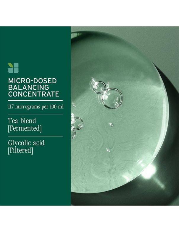 Experience a deep yet gentle cleanse. Scalp Sync Clarifying Shampoo, infused & micro-dosed with fermented tea & filtered glycolic acid, removes up to 100% of scalp residue without drying, restoring volume & shine.