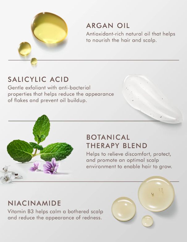 Exclusive to Moroccanoil, this potent blend of fumaria tea and swertia japonica extracts as well as bioactive antioxidants helps to relieve discomfort, protect, and promote an optimal scalp environment to enable hair to grow.