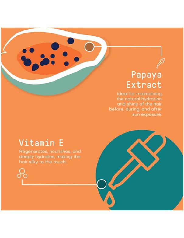 - Enriched with Papaya Extract and Vitamin E, it regenerates, nourishes, and deeply hydrates, making the hair silky to the touch.