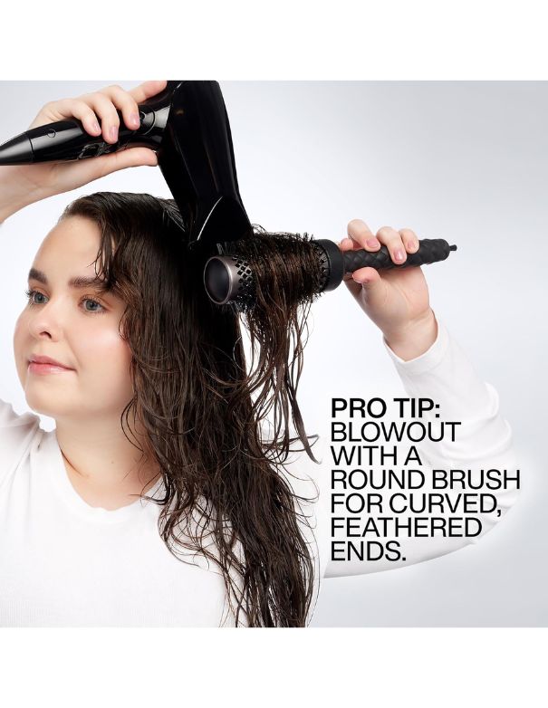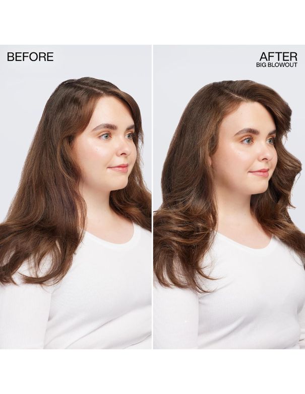 To use, apply a medium amount of Big Blowout through damp hair and incorporate throughout from root to ends. Then, use your blow dryer and round brush to blowout hair for a bouncy, smooth and shiny style.